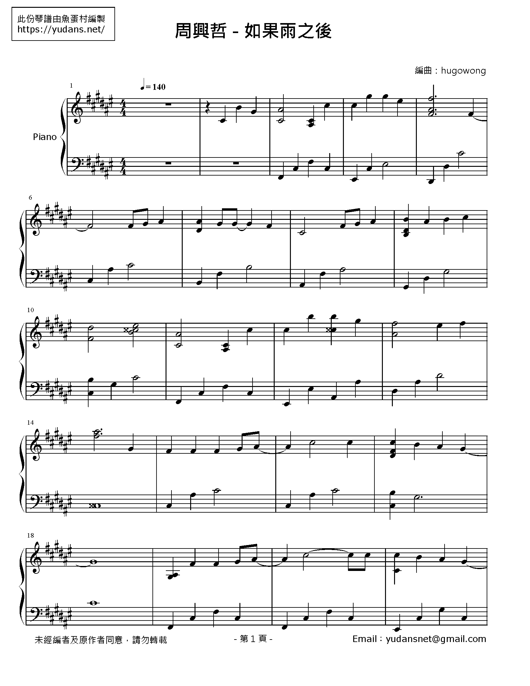 Source: img.mymusic.net.tw 如果雨之後 chord譜 結他譜 吉他譜 簡譜。主唱 周興哲, 作曲: 周興哲, 填詞: 吳易緯、周興哲 如果雨之後 淚還不停流如果悲傷後 眼神更執著那一雙不能牽的手那疼愛已無人簽收.